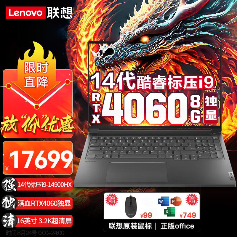 ThinkPad联想ThinkBook 16P 2024款 16英寸高性能游戏本3D建模制图设计师移动工作站笔记本电脑 升配 i9-14900HX 64G 6T固态 RTX4060 8G独显 3.2K价格:17699.00元!