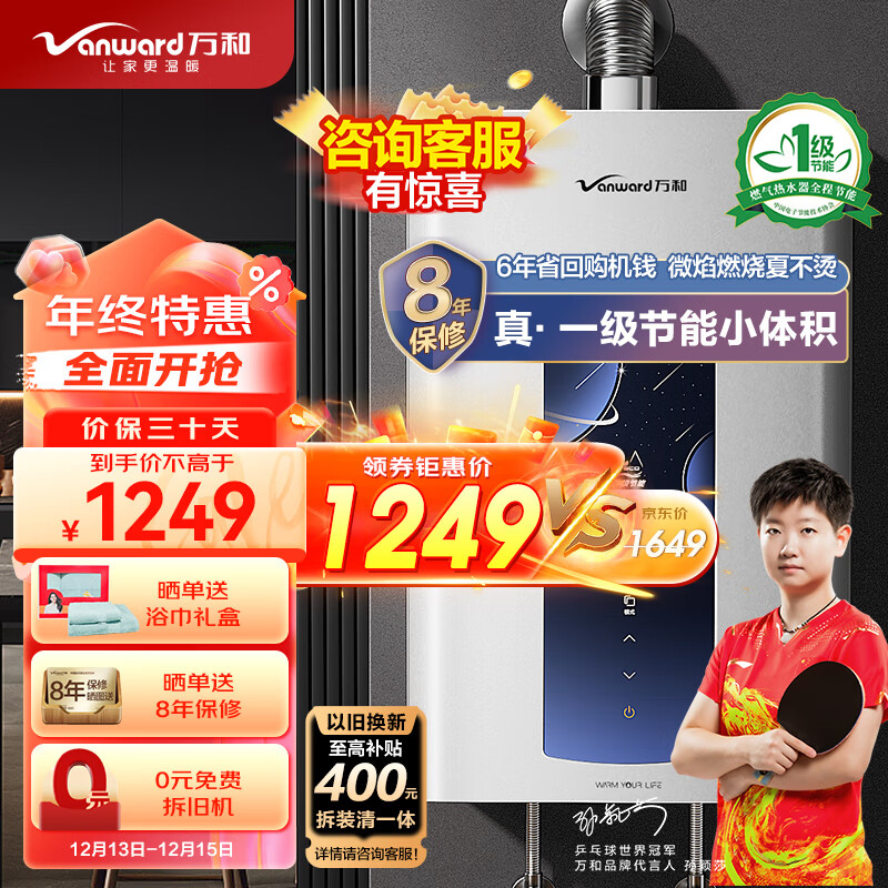 万和(Vanward)13升燃气热水器天然气小体积设计【真·一级节能】速热舱换热微焰控温±0.1°C精准恒温防冻 ME5J13价格:1649.00元!