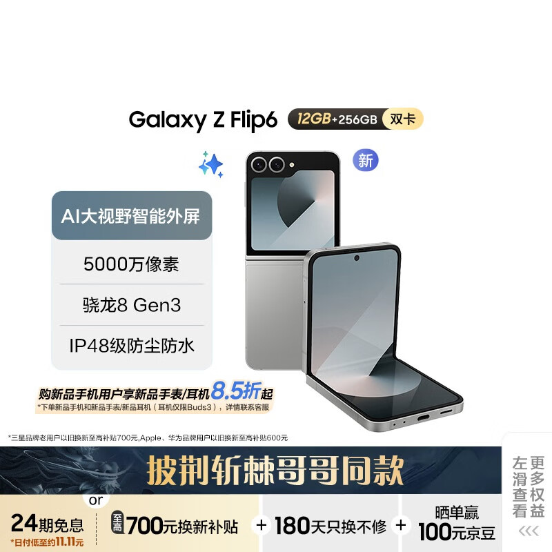 三星(SAMSUNG)Galaxy Z Flip6 AI手机 披荆斩棘哥哥同款 大视野智能外屏 双卡 折叠屏 12GB+256GB 星夜银价格:7999.00元!