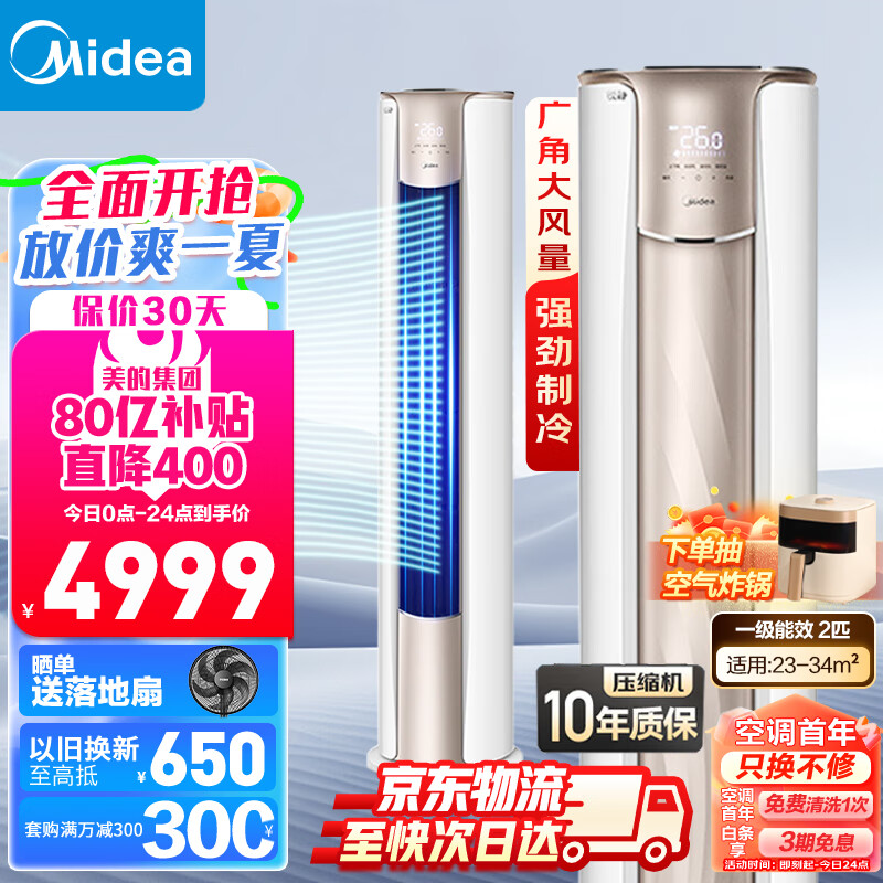 美的(Midea)锐静一级2匹空调变频柜机立式客厅冷暖两用制冷制热大风口空调家电以旧换新51VHC1Ⅱ【风锦同款】价格:4999.00元!