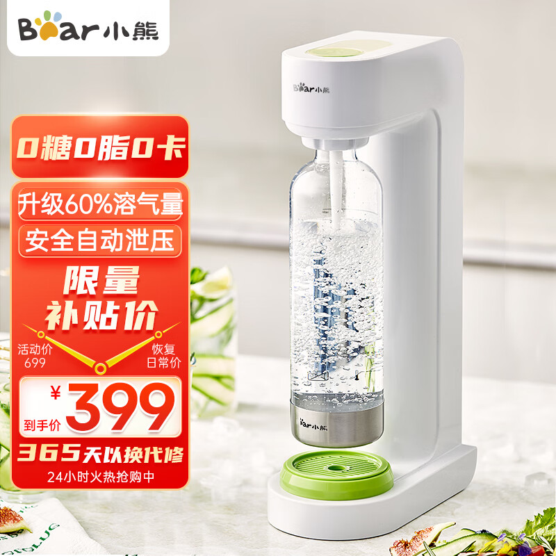 小熊(Bear)气泡水机 家用商用台式小型自制气泡打气机碳酸饮料打气机苏打水机 JH-U0219价格:399.00元!