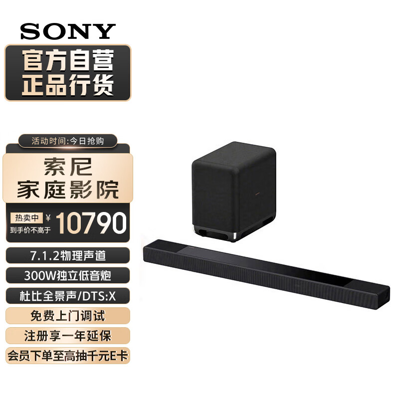 索尼(SONY)HT-A7000+SW5 进阶低音套装 7.1.2 全景声 4K120Hz VRR ALLM 家庭影院 回音壁 电视音响 蓝牙价格:10760.00元!