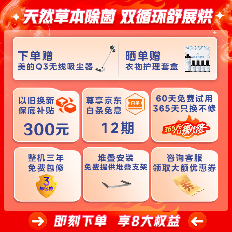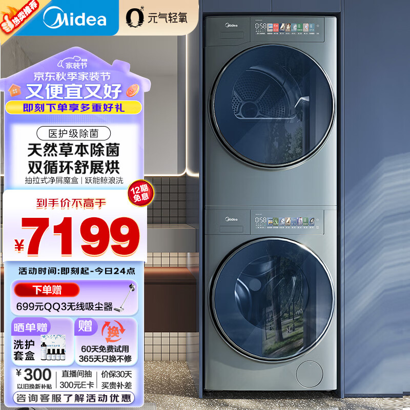 美的(Midea)洗烘套装 10KG滚筒洗衣机全自动+热泵烘干机 超薄大筒径 草本元气棒【元气轻氧】MG100LAIR+IAIR3价格:7199.00元!