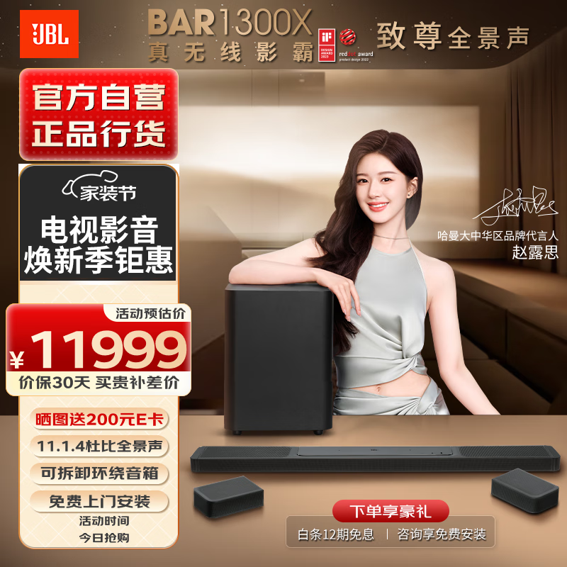 JBL[赵露思同款] BAR1300X回音壁电视音响 11.1.4杜比全景声家庭影院Soundbar 蓝牙家用音箱 欧洲杯价格:11999.00元!