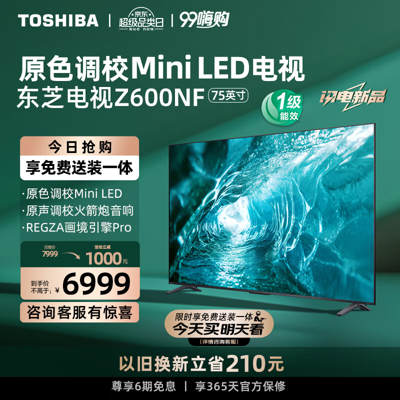 东芝电视75Z600NF 75英寸 原色调校Mini LED 火箭炮音响 4K144Hz超清液晶智能平板游戏电视机 以旧换新价格:6999.00元!