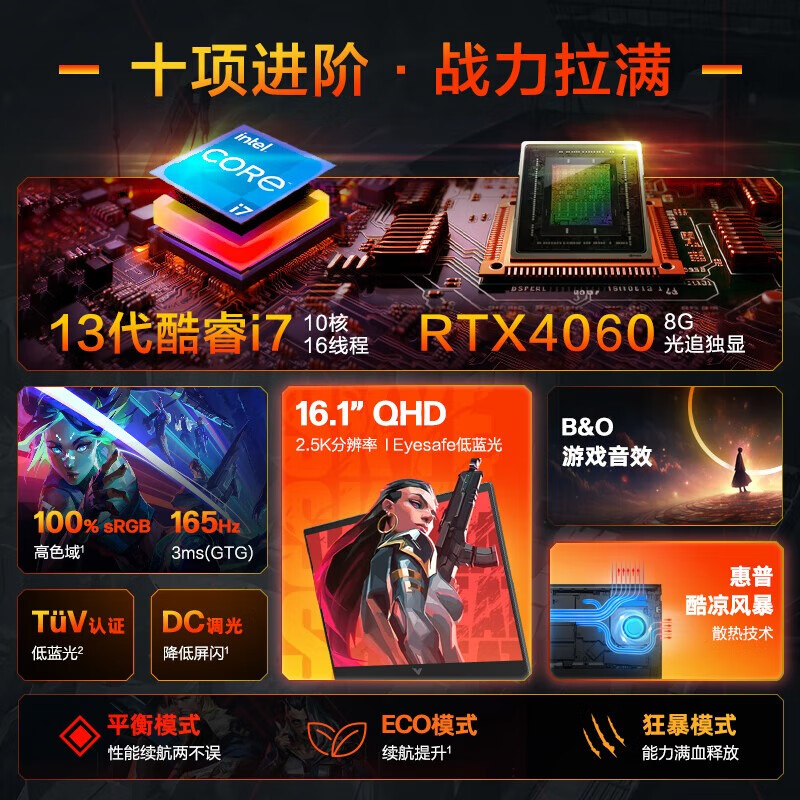 惠普(HP)光影精灵10 Victus 2024新品 16.1英寸酷睿轻薄电竞游戏本电脑 畅玩黑神话悟空 i7-13620H 4060 240Hz 白价格:7499.00元!