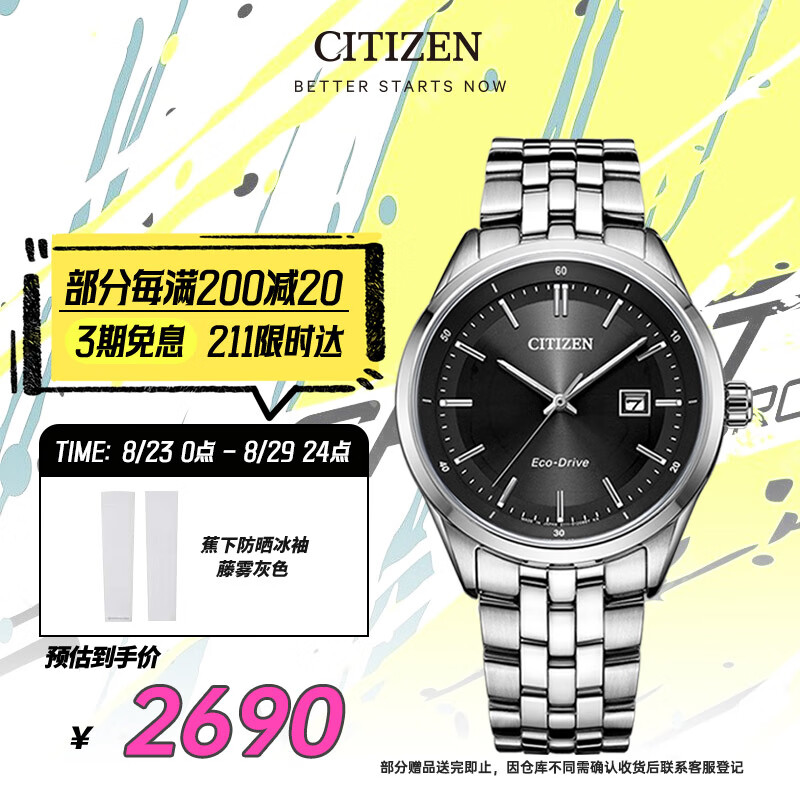 西铁城(CITIZEN)手表男日韩表光动能黑盘日显钢带商务时尚送礼物BM7250-56E价格:2970.00元!