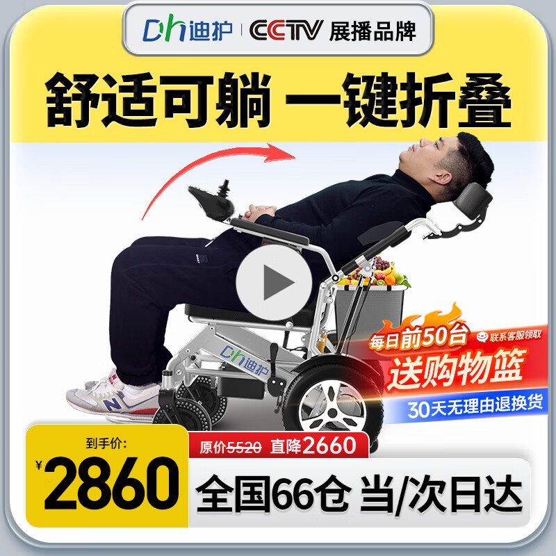迪护 电动轮椅老人全自动越野轻便可折叠旅行便携式小巧家用双人老年代步电动车可上楼飞机可后全躺带坐便器价格:5520.00元!