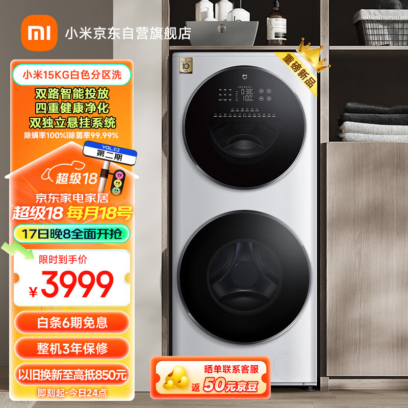 米家小米15KG子母双筒分区洗衣机洗烘一体滚筒全自动白色 直驱变频高温洗空气洗XHQG150MJ205价格:3999.00元!