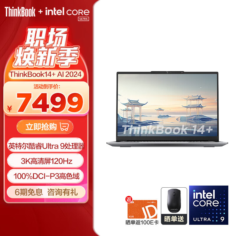 ThinkPad联想ThinkBook 14+ 2024 AI全能本 英特尔酷睿Ultra标压处理器14.5英寸笔记本电脑学生办公轻薄本 Ultra9 32G 1T 3K 0ACD价格:7699.00元!