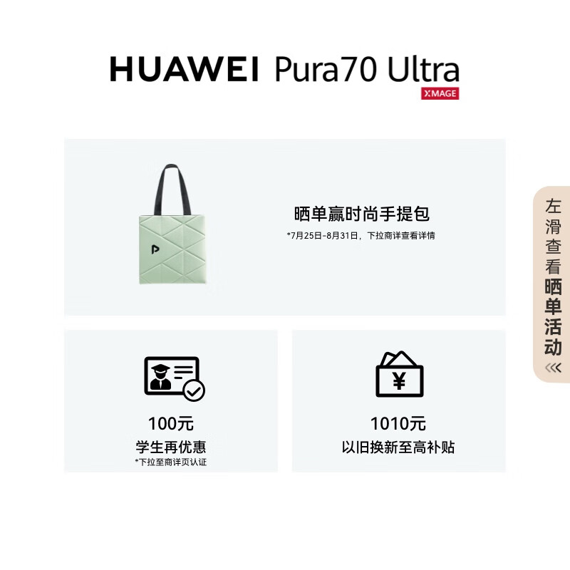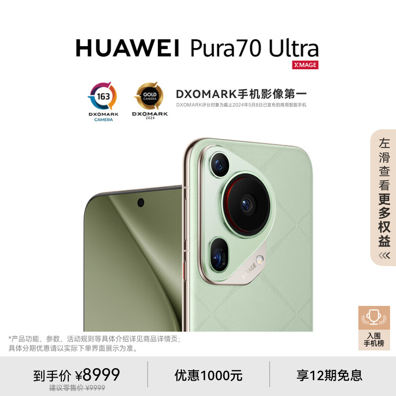 HUAWEI Pura 70 Ultra 香颂绿 16GB+512GB 超聚光伸缩摄像头 超高速风驰闪拍 华为P70智能手机价格:8999.00元!