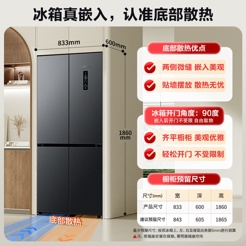 新飞60cm超薄零嵌入式445L十字对开门家用电冰箱一级双直流变频全空间除菌风冷无霜BCD-445WKQ8AT灰价格:2899.00元!