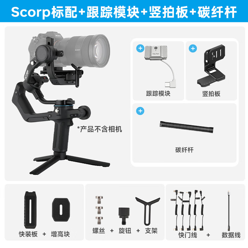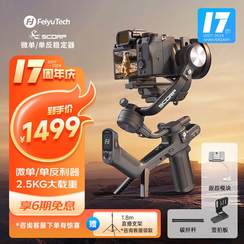FeiyuTech 飞宇蝎子Scorp 微单单反稳定器 专业三轴防抖手持云台 vlog 标配+竖拍板+碳纤杆+跟踪模块价格:1499.00元!