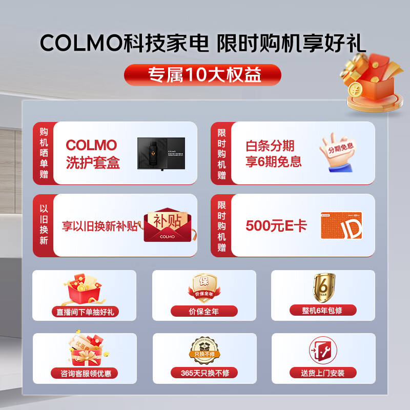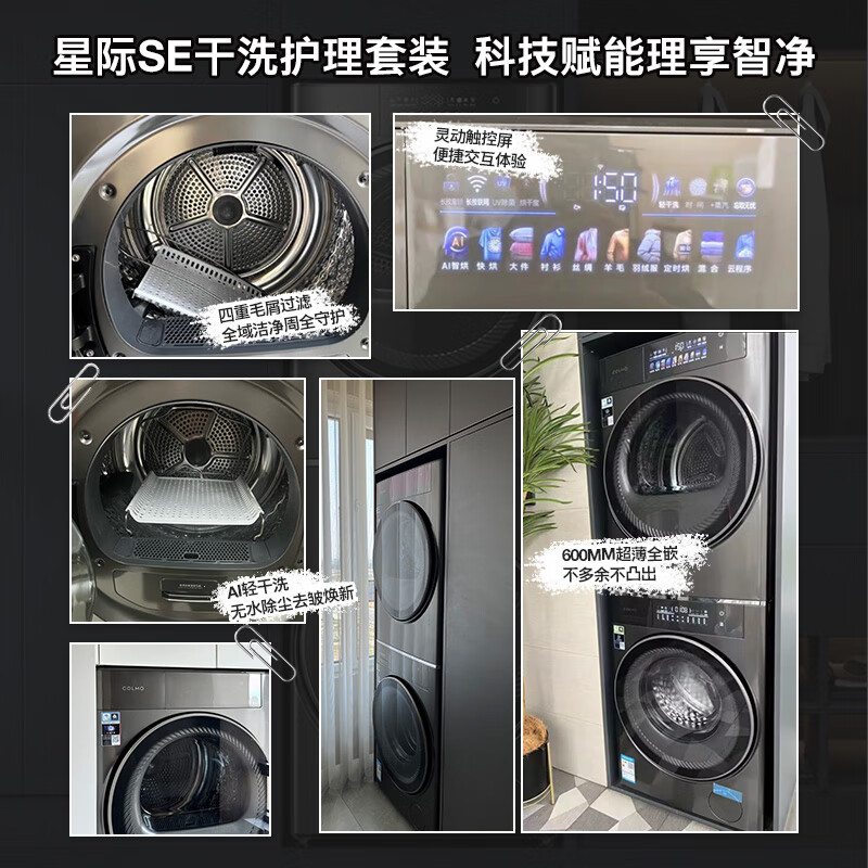 2、COLMO云璃白洗烘套真的是太有feel了!我现在觉得洗衣服也可以是一种享***衣服的时候非常安静,还带银离子功能,衣服洗完后总是有一种清新的感觉;烘干后的衣服既软又不会有皱褶。天气回暖,正好打算把之前没洗的羽绒服洗干净后烘干收起来,洗烘完之后蓬松柔软跟新买的时候一样,太爱了!