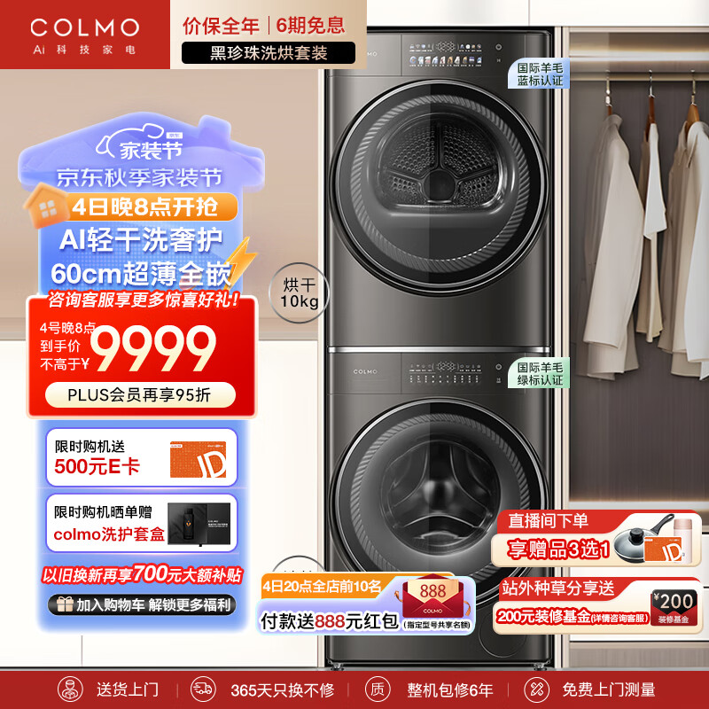 COLMO【黑珍珠系列】洗烘套装10KG洗烘套装全自动洗衣机热泵烘干机 婴儿洗超薄全嵌CLGN10HEL+CLHZ10HDL价格:10998.00元!