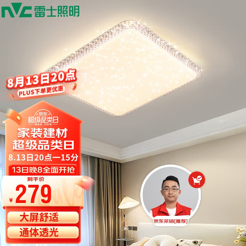 雷士照明(NVC)led吸顶灯卧室灯现代简约仿水晶满天星灯饰灯具 三段调光48W价格:369.00元!