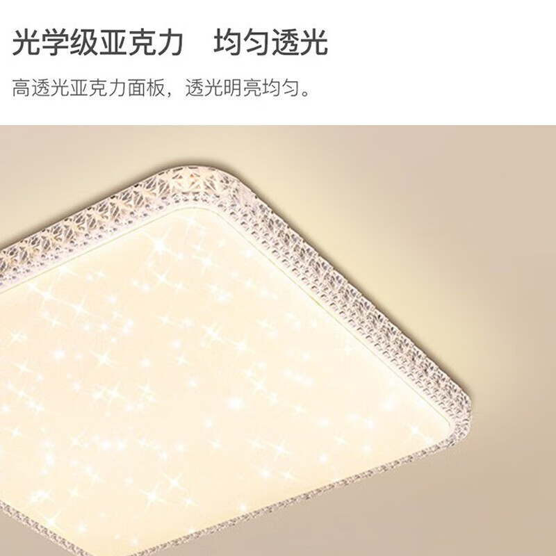 2、这款正方形的星星花纹放在卧室,看起来很酷,灯盘很亮,有三种不同色温的灯光可选,普通开关就能控制,边上的装饰提高了档次,推荐!