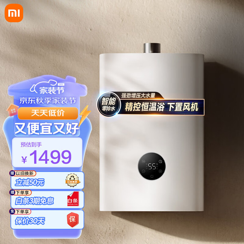 米家小米16升燃气热水器天然气水气双调智能恒温护肤零冷水 ECO节能净滤除菌护肤洗智慧节能JSQ30-MJ03价格:1499.00元!