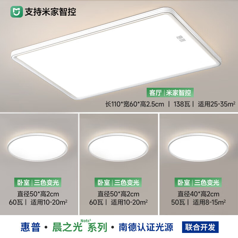 惠普全光谱护眼吸顶客厅卧室灯米家现代简约灯饰中山灯具全屋套餐G价格:2960.00元!