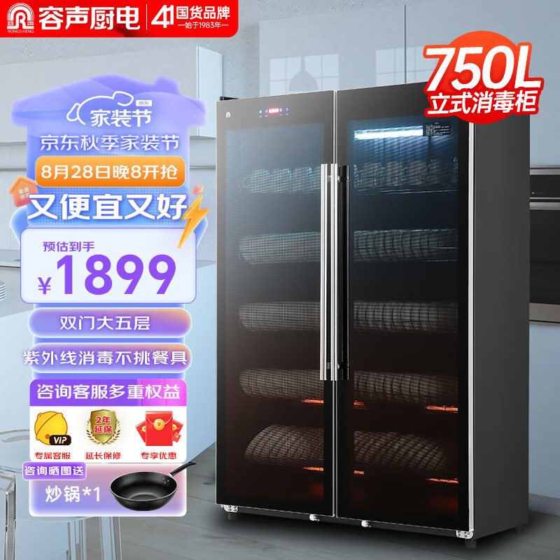 容声(RONGSHENG)消毒柜家用 立式 消毒碗柜 餐饮 双开门 家商两用 厨房商用 大容量750L保洁柜900-RD307价格:1899.00元!