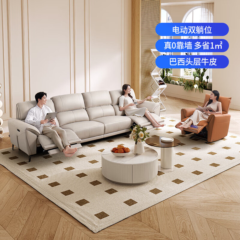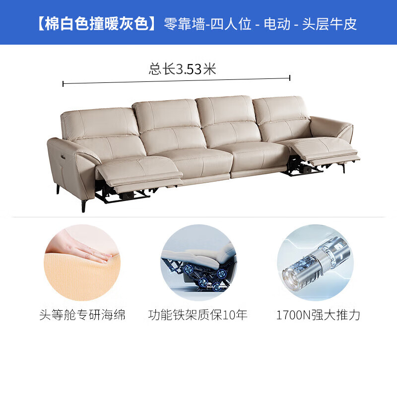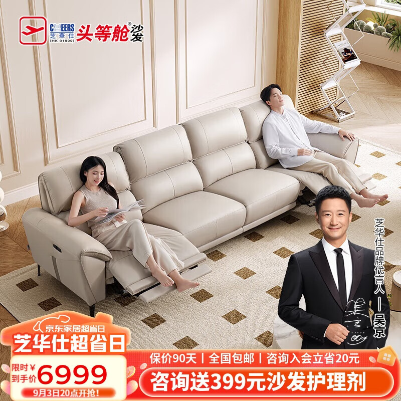 芝华仕(CHEERS)头等舱零靠墙真皮沙发现代功能客厅直排家具芝华士50953白四价格:6999.00元!