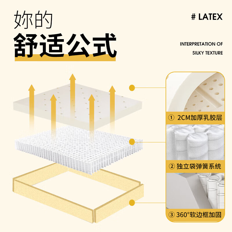 雅兰天丝?面料软硬双面独袋弹簧2cm乳胶床垫 大小姐 1.8*2米价格:4899.00元!
