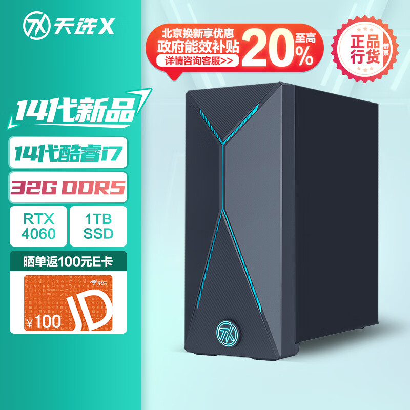 华硕天选X 2024 游戏台式机电脑主机 畅玩黑悟空(14代i7-14700F 华硕RTX4060 8G显卡 32G DDR5 1T)价格:7899.00元!