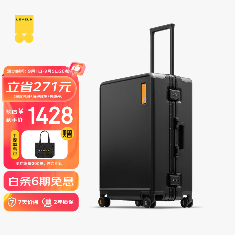 地平线8号(LEVEL8)行李箱男女粗铝框旅行箱24英寸拉杆密码箱PC拉杆箱氦系列黑色价格:1699.00元!