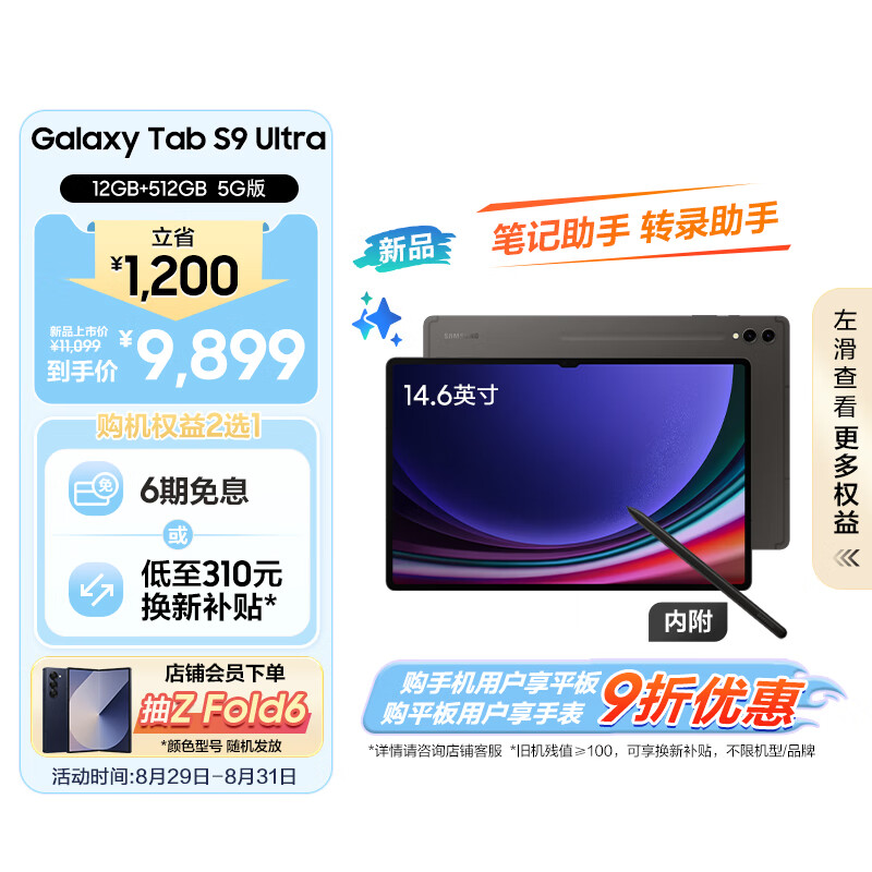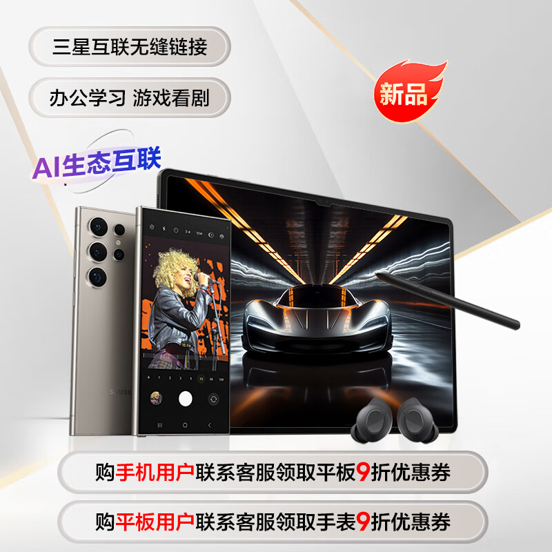三星(SAMSUNG)S9 Ultra Al智享学习办公平板电脑14.6英寸 120Hz 12G+512GB 5G含Spen AI平板 云影灰价格:9899.00元!