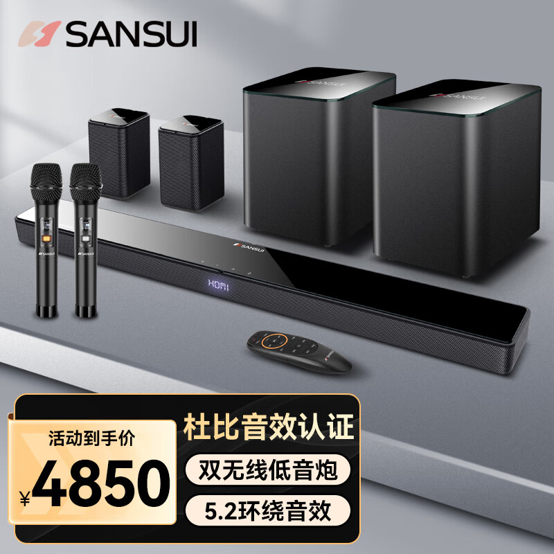 山水(SANSUI)杜比音效回音壁家用电视音响家庭影院KTV套装客厅无线蓝牙音箱卡拉OK音响K歌带低音炮95E 5.2价格:5800.00元!