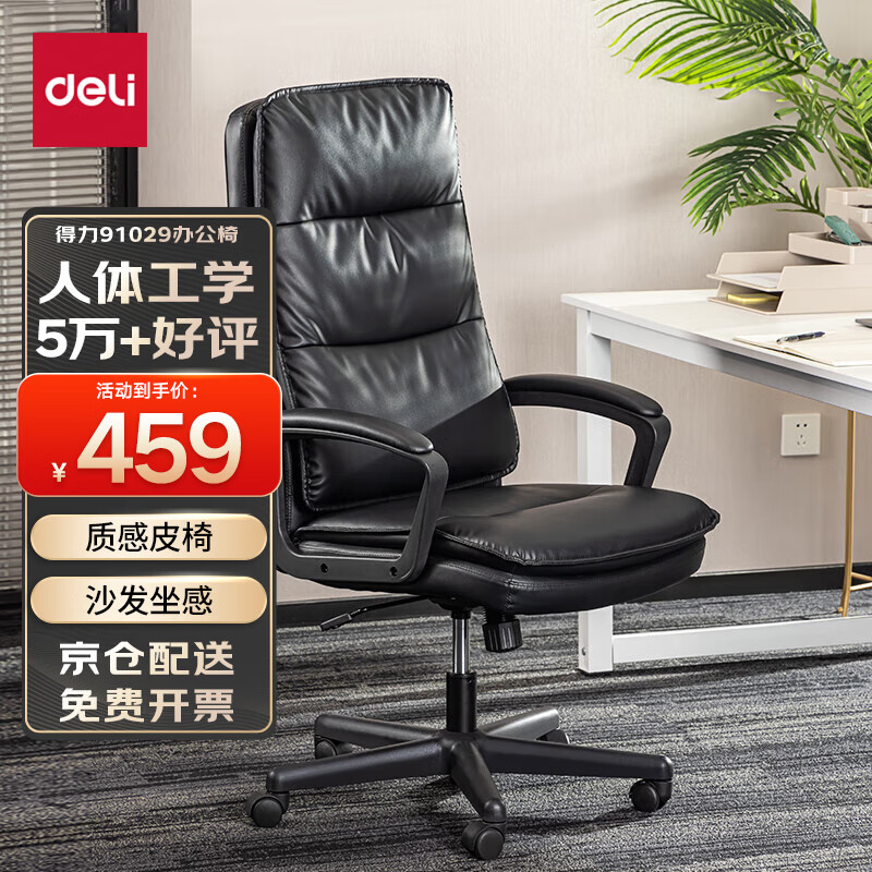 得力(deli)91029电脑椅 家用办公椅 转椅人体工学皮椅子 老板椅价格:499.00元!