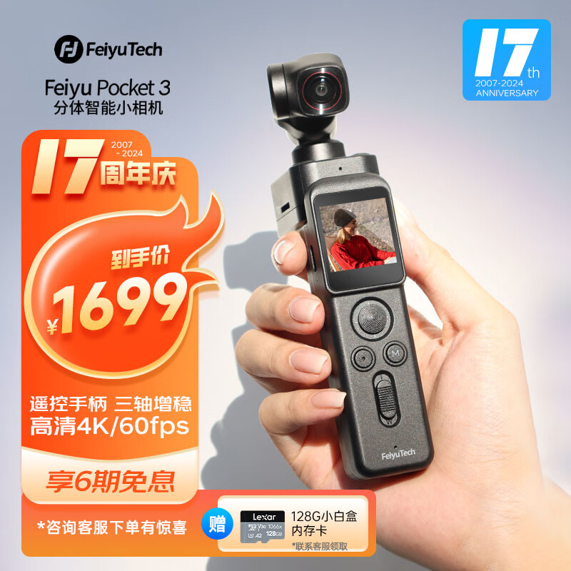 FeiyuTech飞宇Feiyu pocket3口袋云台相机 骑行户外运动相机 手持可分离摄像头高清增稳vlog摄影机价格:1699.00元!