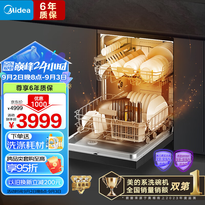 美的(Midea)14套嵌入式洗碗机RX600Max 105℃热风烘干+升降碗篮 一级水效 三星消毒分层洗 RX600Pro升级款价格:4299.00元!