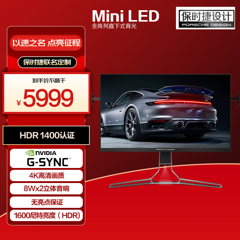 AOC爱攻&保时捷联名定制 31.5英寸 MiniLED 4K144Hz 快速液晶1ms HDR1400 双8W音响 电竞显示器 PD32M价格:5999.00元!