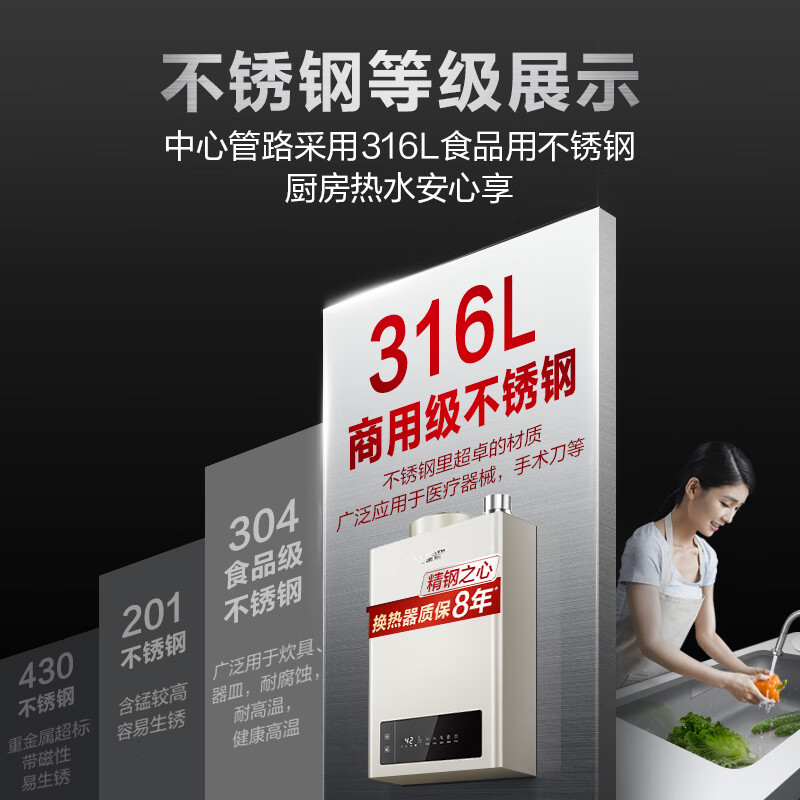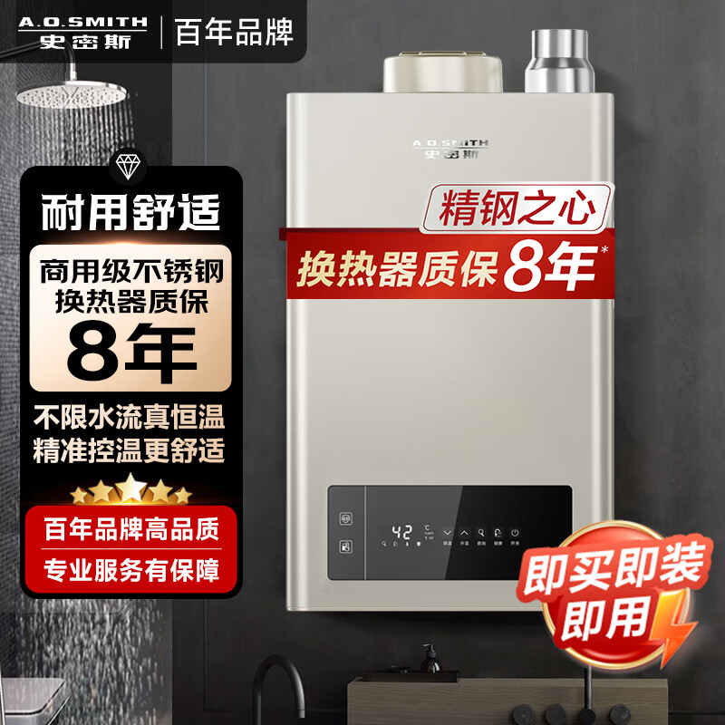 史密斯(A.O.SMITH)13升燃气热水器 不锈钢换热器包8年 负压燃烧更 精控恒温 家用JSQ26-TM5价格:2698.00元!