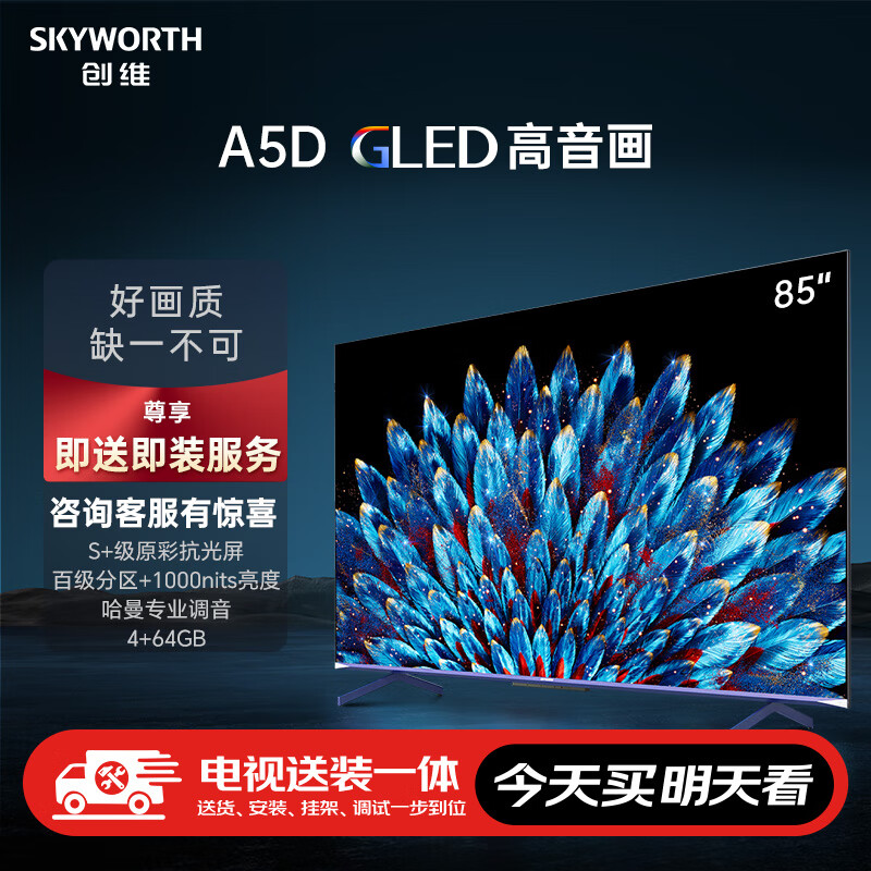 创维电视85A5D【送装一体版本】85英寸电视机288Hz哈曼调音一级能效护眼平板巨幕大屏液晶游戏电视价格:5898.00元!