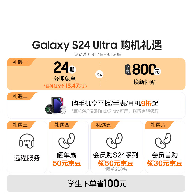 三星(SAMSUNG)Galaxy S24 Ultra AI手机 第三代骁龙8 游戏手机 2亿像素 拍照手机 钛金属边框 12GB+1TB 钛黑价格:12699.00元!
