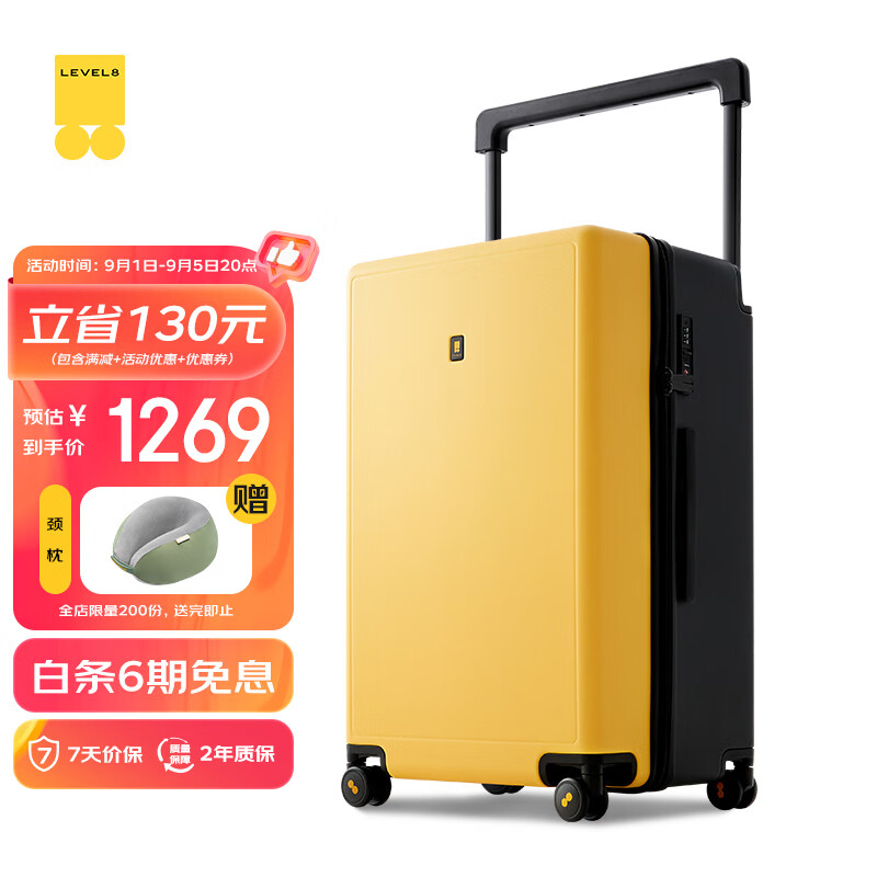 地平线8号(LEVEL8)行李箱男女密码拉杆箱 大旅行家大容量26英寸宽拉杆PC箱 黄黑拼色价格:1399.00元!