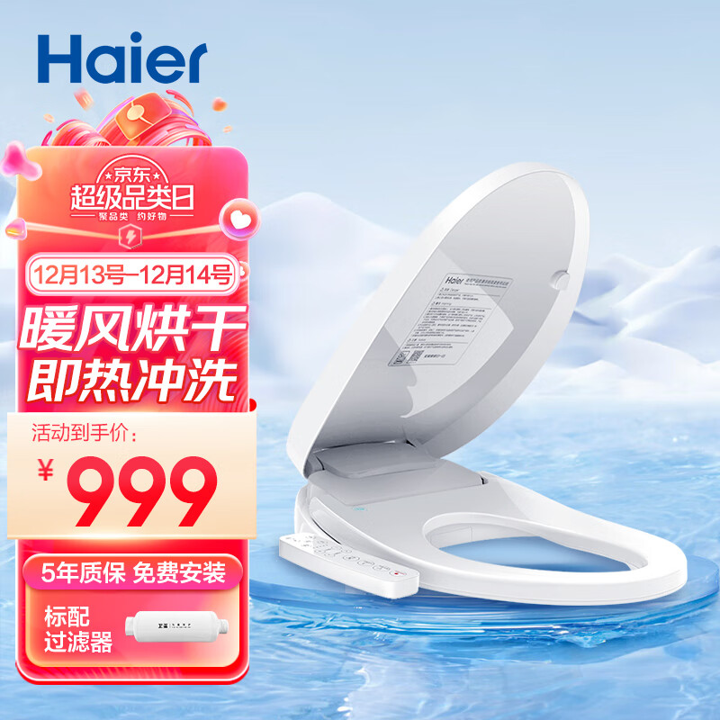 海尔(Haier)智能马桶盖 即热暖风款 电动加热马桶圈 全自动坐便盖 V-168Plus价格:1299.00元!
