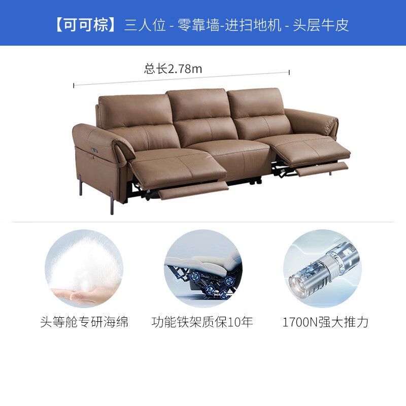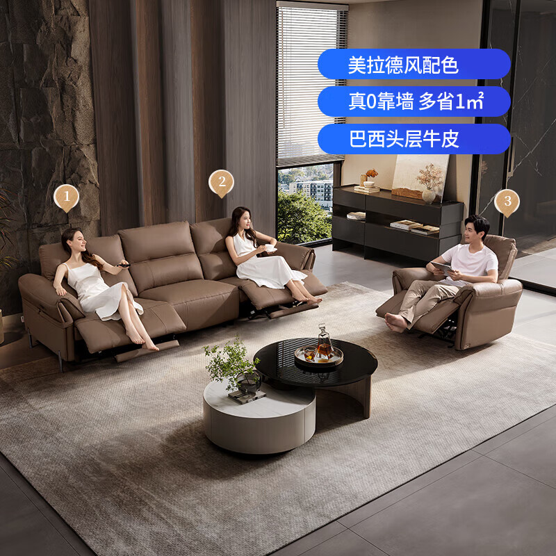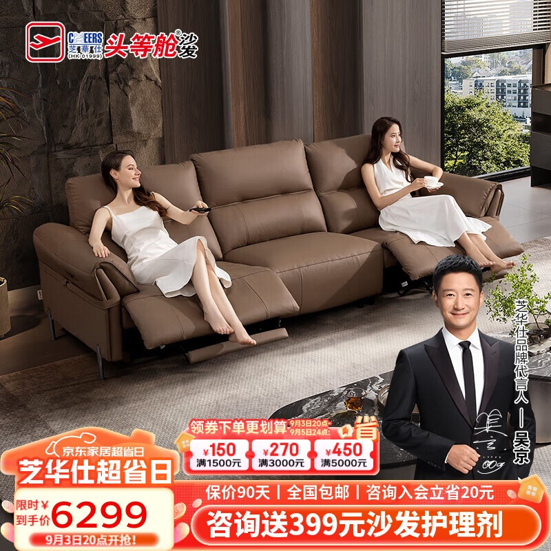 芝华仕(CHEERS)头等舱零靠墙意式轻奢真皮功能沙发客厅芝华士50795升级大三棕A价格:6299.00元!
