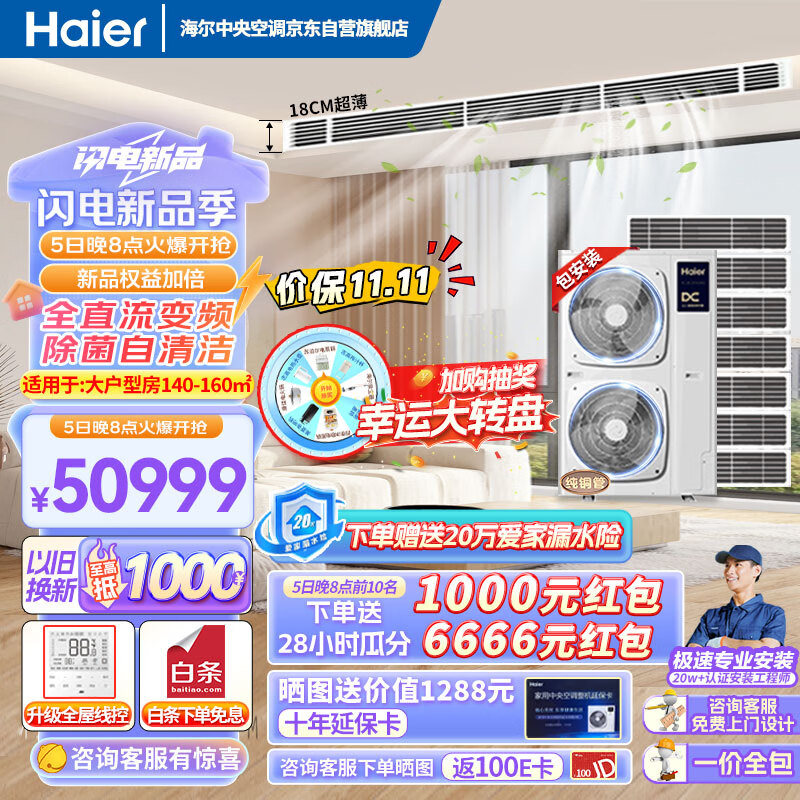海尔(Haier)中央空调一拖七风管机9匹小多联新一级能效全直流变频嵌入式铭家RFC226MXSAYD(G)价格:50999.00元!