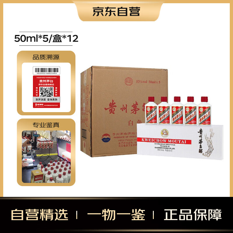 茅台(MOUTAI)飞天 白色条盒装 酱香型白酒 53度50ml*5/盒*12 整箱装价格:14388.00元!