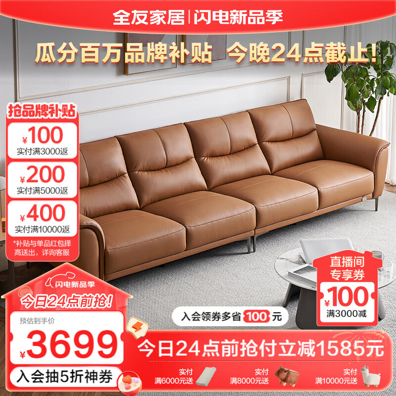 全友家居 皮艺沙发客厅现代简约头层牛皮直排式轻奢风真皮沙发112011价格:5284.29元!