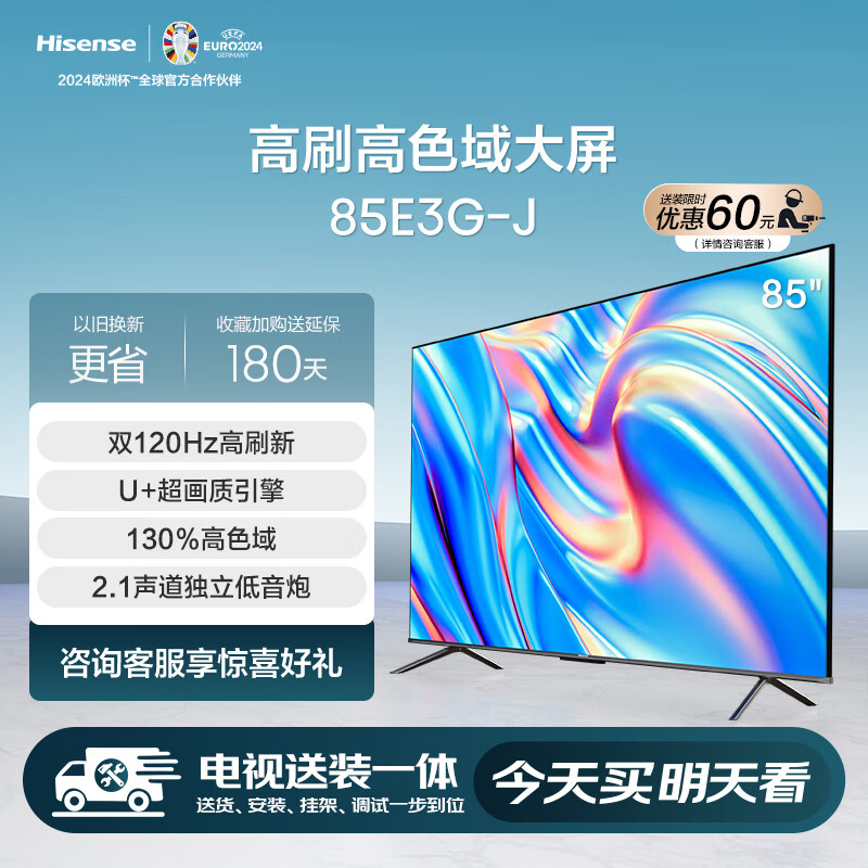 海信电视85E3G-J 【送装一体版】 85英寸130%高色域 超薄智慧屏 75客厅液晶智能平板电视机价格:4638.00元!