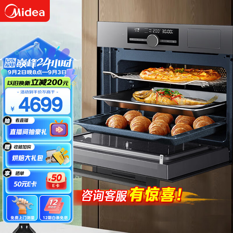 美的(Midea)微霸嵌入式微蒸烤炸炖一体机RS5 55L大容量 智能变频微波炉家用蒸箱烤箱 APP掌控搪瓷内胆GP50价格:4699.00元!