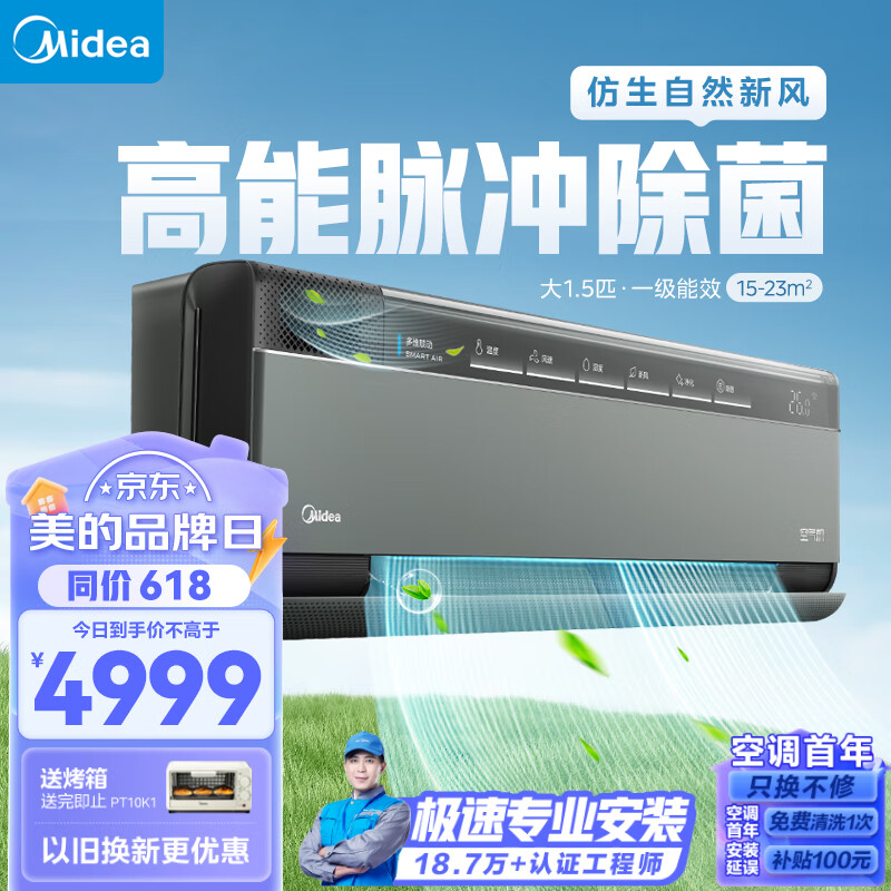 美的(Midea)空调挂机 大1.5匹鲜净感空气机 智能空调 榭湖银壁挂式一级变频 KFR-35GW/T5价格:4999.00元!