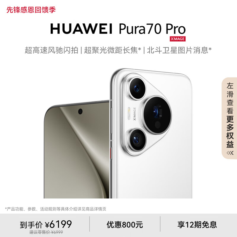 HUAWEI Pura 70 Pro 雪域白 12GB+512GB 超高速风驰闪拍 超聚光微距长焦 华为P70智能手机价格:6199.00元!