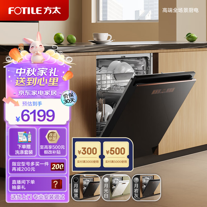 方太新月洗碗机嵌入式家用 高能气泡洗 升级16套大容量 VF1升级 烟洗联动 三色可选02-VF1A价格:6199.00元!