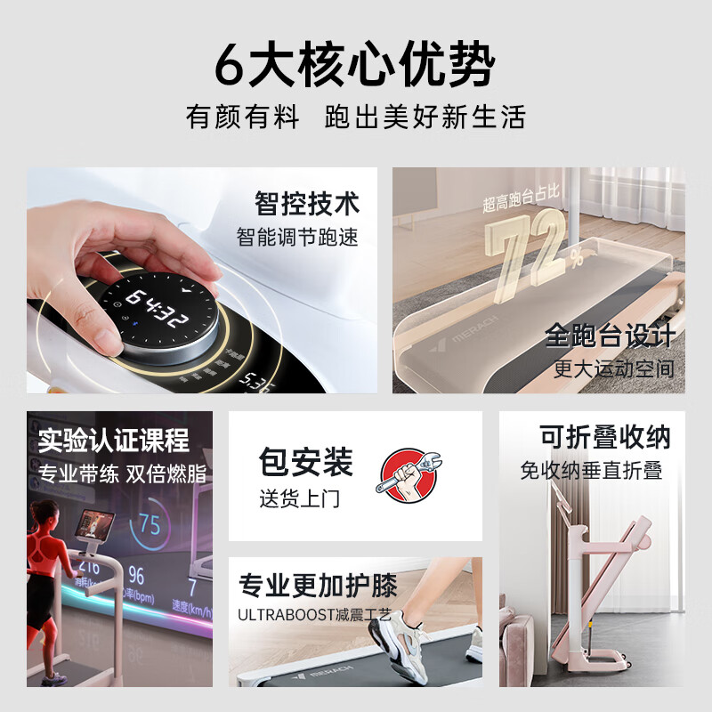 麦瑞克(MERACH)跑步机 家庭用折叠智能运动健身器材室内小型走步机价格:1099.00元!