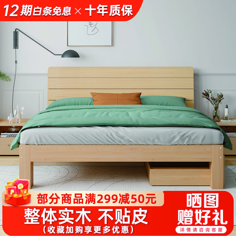 意米之恋实木床现代简约家用双人床卧室家具储物床 1m*2m【满铺】JY-02价格:429.00元!